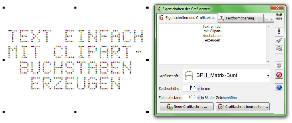 Bei Clipart-Sammlungen gibt es häufig auch Grafiken, die Buchstaben oder Ziffern darstellen. Meist sind alle zehn Ziffern oder alle 26 Buchstaben im gleichen Design vorhanden, so dass damit Zahlen oder Texte dargestellt werden könnten. Doch häufig ist der Aufwand die einzelnen Grafiken zu importieren und dann zu einem Text auszurichten, so hoch, dass man es dann doch lässt.